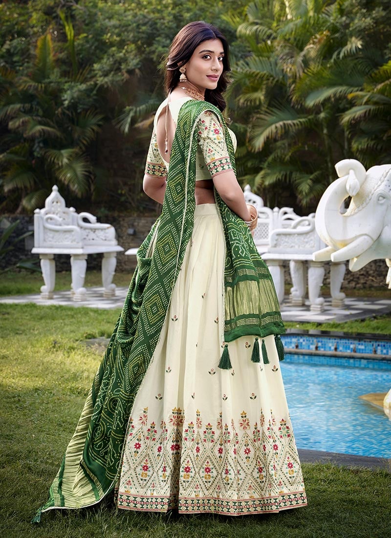 Khadi Cotton Lehenga Choli with Sequins & Thread Embroidery