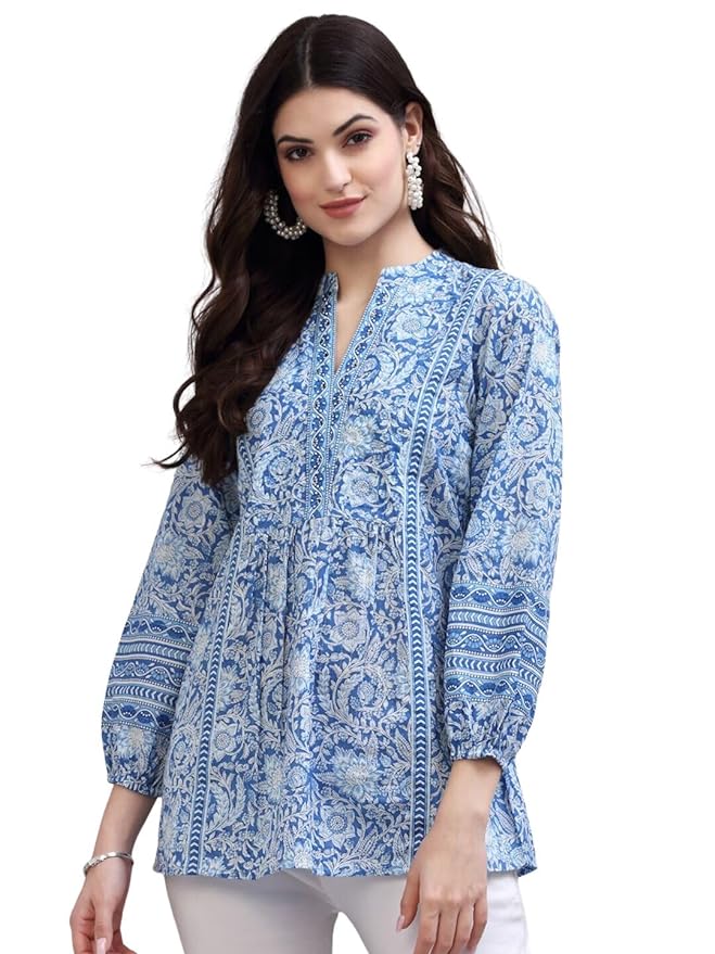 Fabric: Cotton Wash Care: Machine Wash Neck: Mandarin Collar Style: Long Top Color: Blue