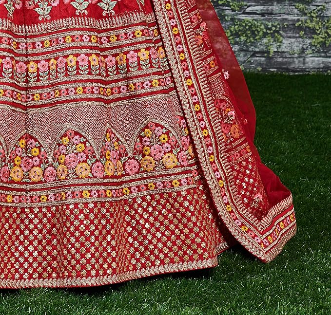 • This Stunning Bridal Lehenga choli for women comes with 2 dupattas.